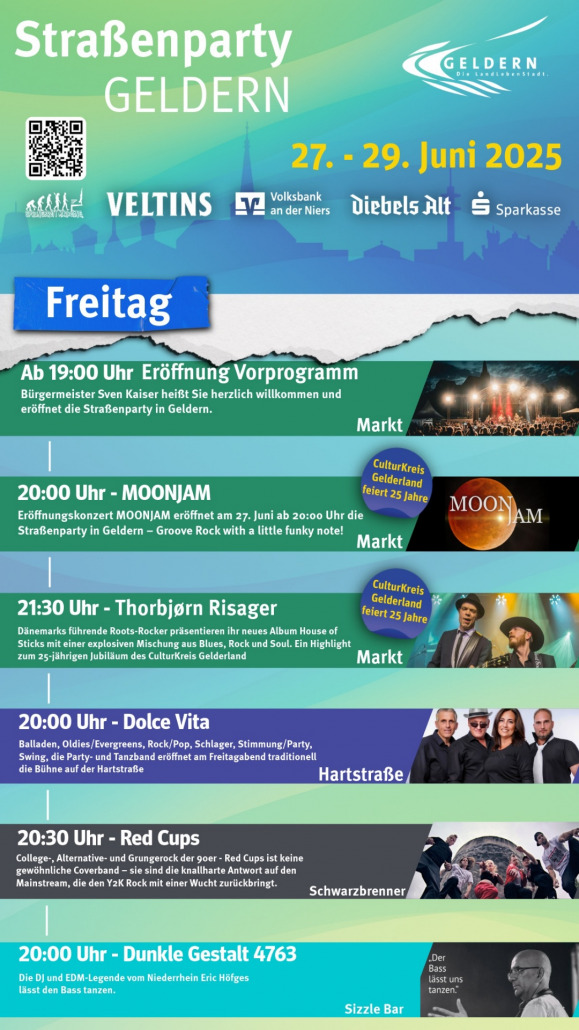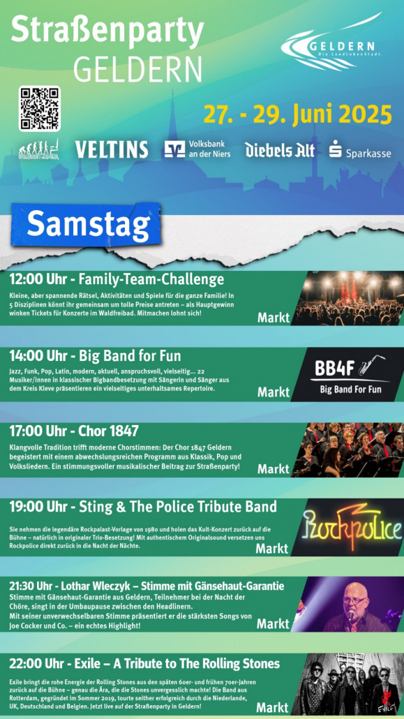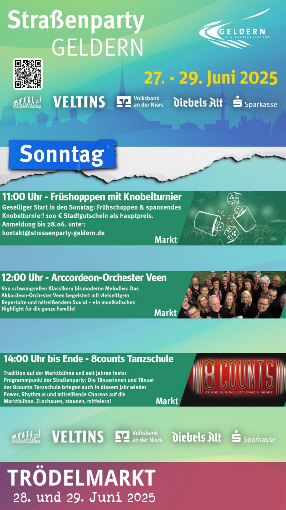 Unter der Leitung des Tourismus- und Kulturbüros der Stadt Geldern und im Schulterschluss mit der Event- & Marketingagentur des Bädervereins Waldfreibad Geldern e.V. wird die Historie in Bezug zur Organisation und Durchführung der Straßenparty durch den ausscheidenden Werbering Geldern nahtlos fortgesetzt!